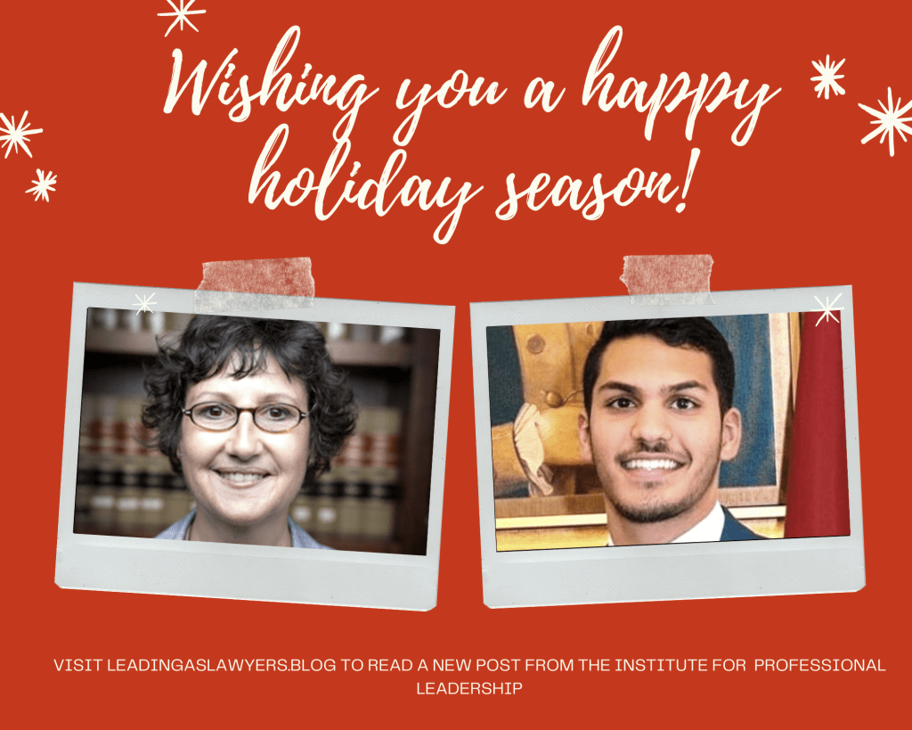 As you know, for faculty, much of the break focuses on assessing student work—in my case, 64 written final exams and 29 papers (including two from you!). But it always is a time of looking forward for me as well. From the standpoint of law teaching, there is, of course, a new semester on the horizon. In the past two years I taught an overload in the spring semester, so my main professional objectives were rather general ones, including those necessary to surviving through teaching four courses (and last year, knowing that would be done in a pandemic)! But this year, with a more normal two-course load in the spring semester, I am focused on broader professional and personal goal setting, which I look forward to doing over the next few weeks. (As an aside, I will note that I prefer goal setting to resolution making. The former is part of a process I routinely use to organize my life in and outside work; the latter seems like more of a fixed-in-time do-or-die kind of planning.) Professionally, you and I will be working with others on strategic planning for the Institute for Professional Leadership. I look forward to benchmarking that process. In addition, I have some longer-term projects—a paper and two books—in process that I have reset goals on many times. I want to prioritize those projects this year. Personally, I will be setting new goals for calorie consumption and physical activity (something I do rather regularly) and planning to travel with my husband. The Greek financial crisis and the COVID-19 pandemic have delayed trips we had planned to take in recent years. But we are committed to working out plans for travel in 2022. Look for news of my specific, measurable, achievable, results-oriented, time-bound (i.e., SMART) goals on all of that and more in the new year.